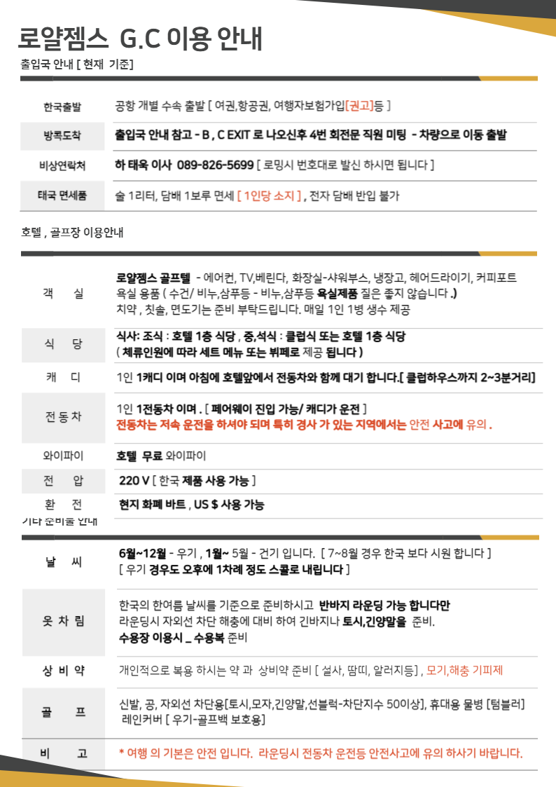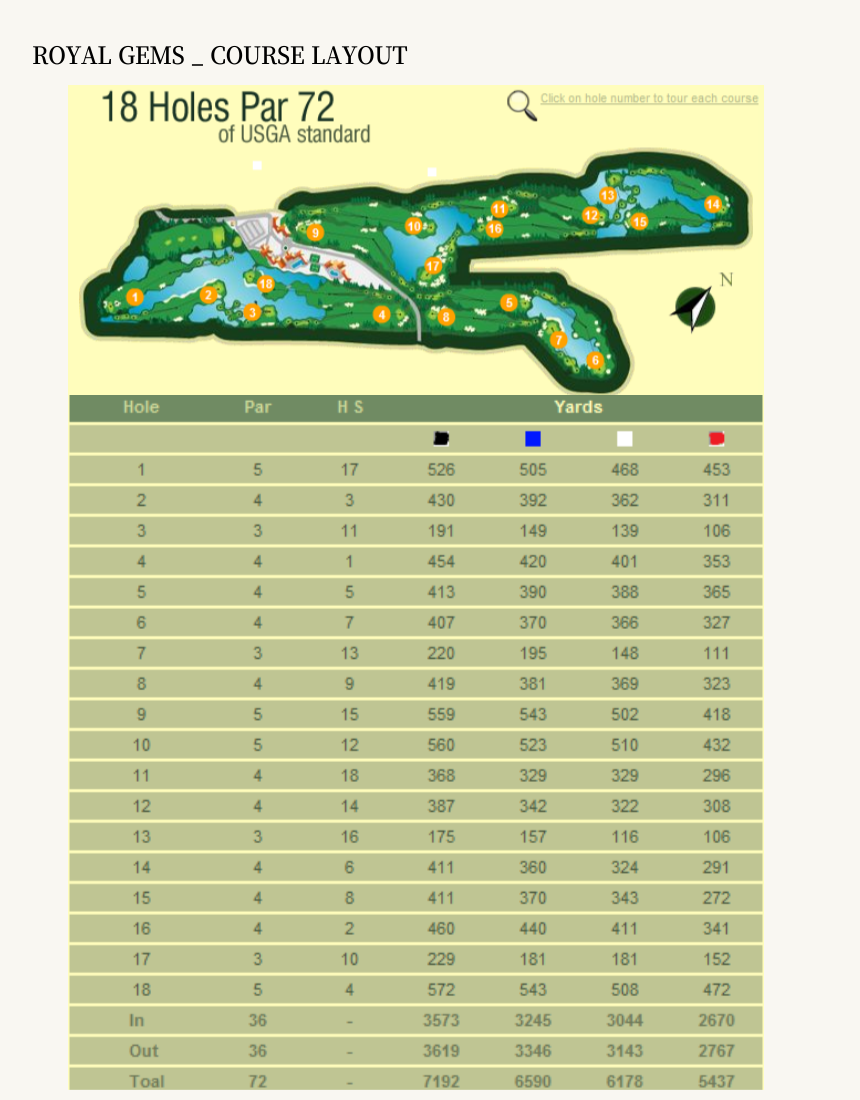 로얄잼스는 호텔과 골프장 내에 5개의 레스토랑과 바, 수영장 테니스장, 스쿼시장 등 다양한 스포츠 시설이 마련되어 있는 휴식과 골프를 즐기실 수 있는 고품격 리조트형 골프장 입니다. 로얄잼스는 방콕 시내에서 30분, 공항에서 50분 거리에 위치하고